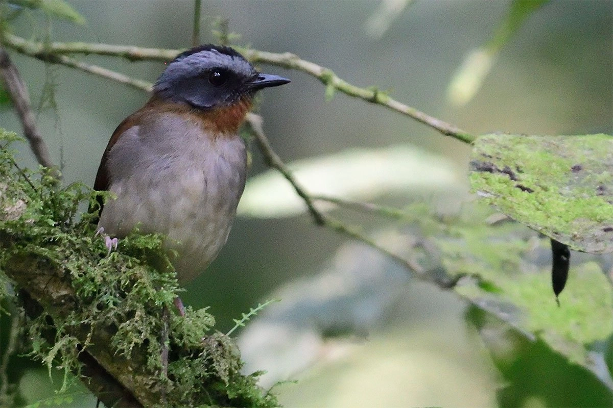 This bird prefers montane or highland forests and can typically be seen in both the dense undergrowth and forest canopies. Usually found in pairs or small family groups, its distinct vocalizations include a variety of whistles and other calls.